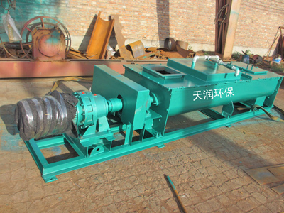 粉塵加濕機由二組螺旋葉片機均勻供料進入主機,把進入混料槽/攪拌槽的干灰粉狀物料由給水裝置定量供給的水進行強制混合、攪拌,同時將符合濕度要求的物料輸送至出料口排出,達到消除揚塵的目的。